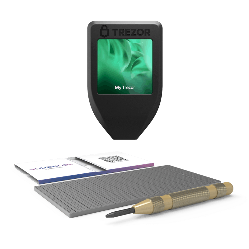 Protect your crypto with the perfect combination of Trezor T and SOLIDHODL. Use the Trezor T hardware wallet to keep your crypto safe from hackers. Combine this with SOLIDHODL to create a backup of your 12 to 24-word recovery seed that is resistant to fire and other extreme conditions. Together, they protect your crypto assets so you can invest in crypto with complete peace of mind.