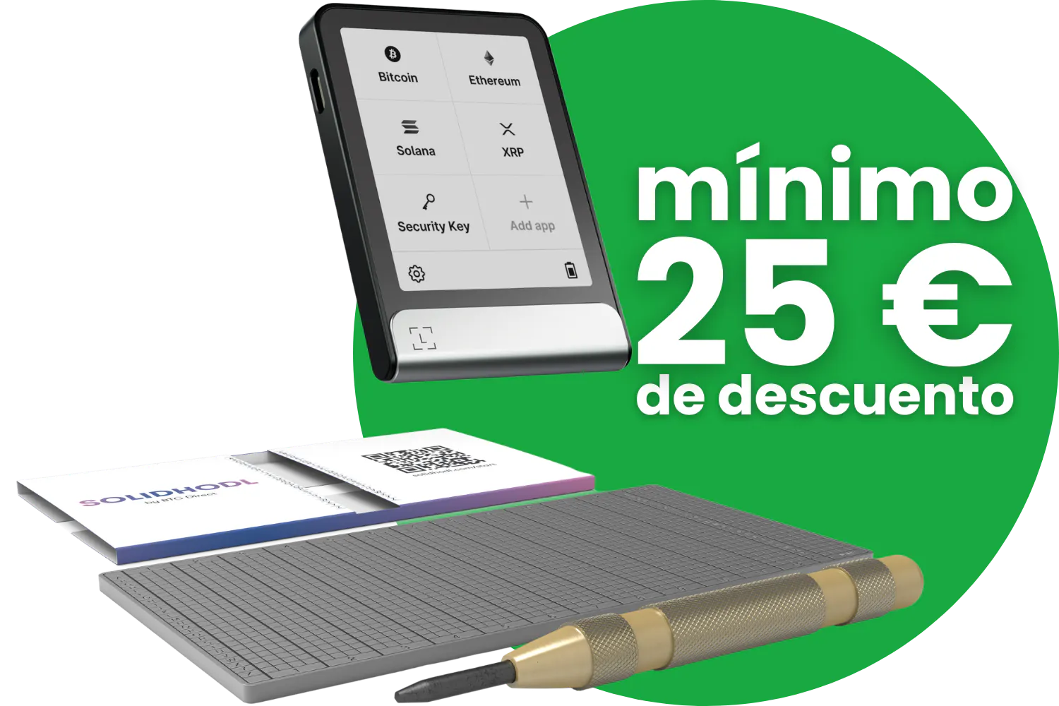 Compra un paquete de billetera de hardware + SOLIDHODL y obtén 25 € de descuento.