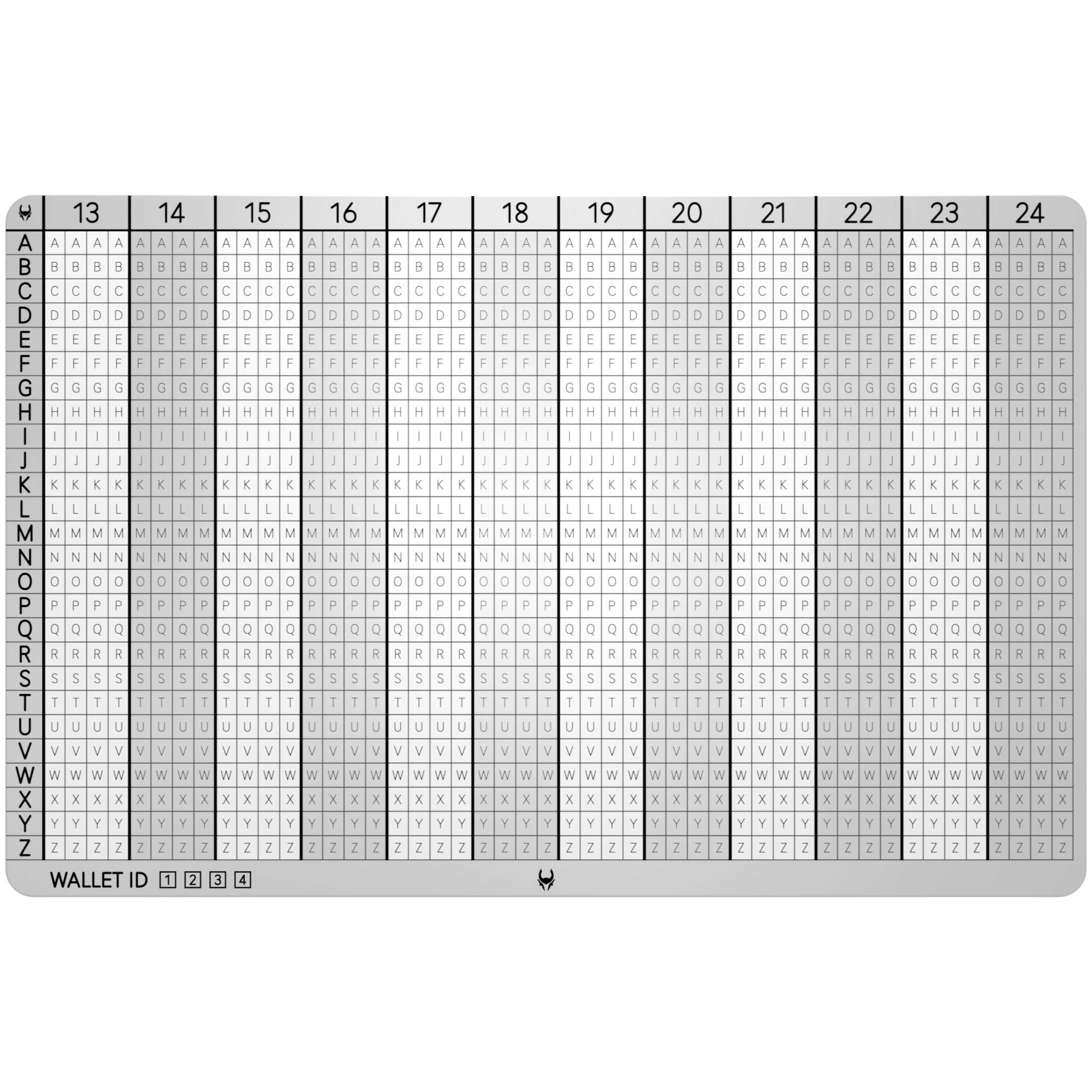Beide zijden van de SOLIDHODL zijn diep in het metaal gegraveerd en niet erop gedrukt. Je kunt de gravering daadwerkelijk voelen. Op de voorzijde kun je de eerste vier letters van de woorden 1 t/m 12 ponsen, en op de achterzijde de woorden 13 t/m 24.
