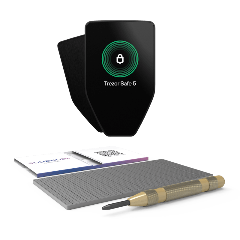 Proteja seus ativos digitais com a combinação perfeita de Trezor Safe 5 e SOLIDHODL. A carteira de hardware Trezor Safe 5 garante a máxima segurança contra hackers, enquanto SOLIDHODL cria um backup à prova de fogo da sua frase de recuperação de 24 palavras. Invista em criptomoedas com total tranquilidade.